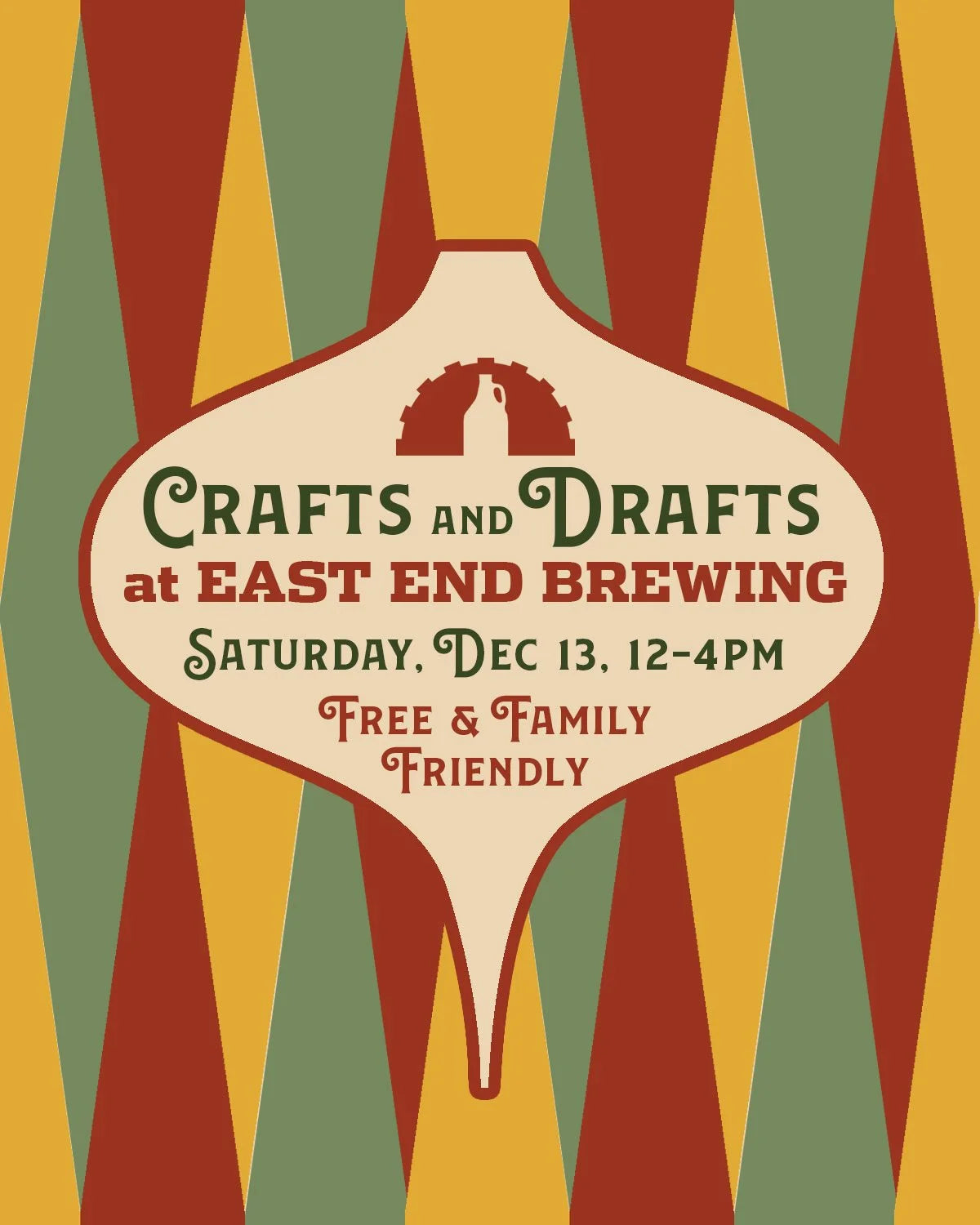 East End Brewing will be open for service as normal, but the double doors to the brewery will be open and we welcome you inside to peruse the local vendors who will have their art and wares for sale!